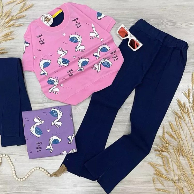 کراپ و شلوار دمپا گشاد چاکدار طرح پلیکان