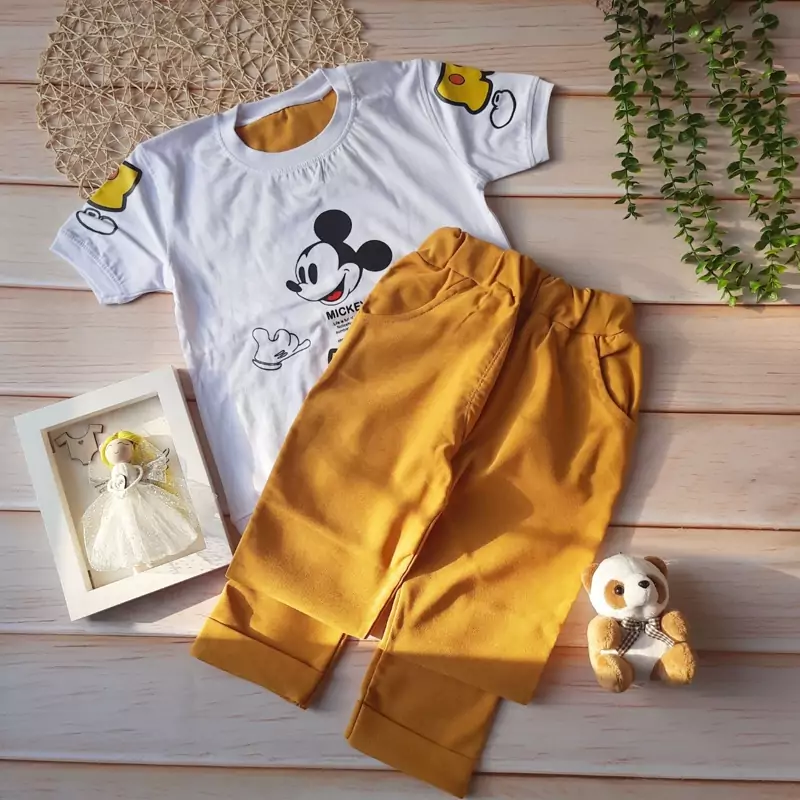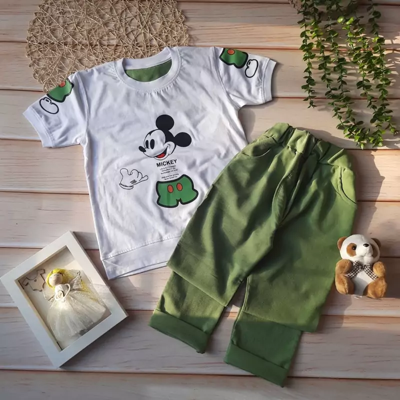 تیشرت وشلوار میکی نامرئی جنس بلوز : پنبه یه رو سوپر درجهیک جنس شلوار:کتان کش سایز 50: قد لباس 49 پهنا 37 قدشلوار 69