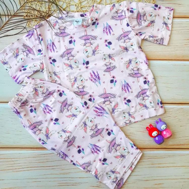 ست تیشرت شلوارک دخترانه نخ پنبه طرح خرگوش