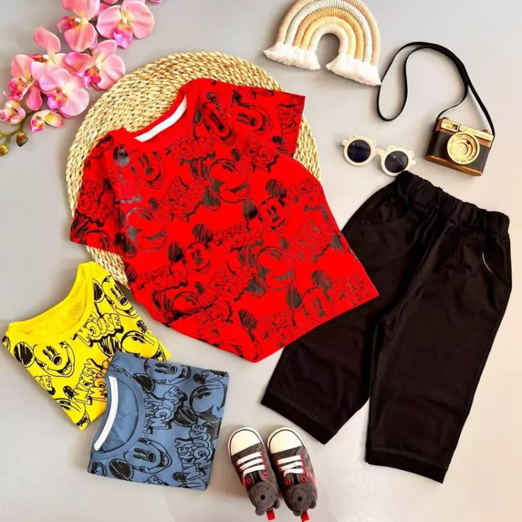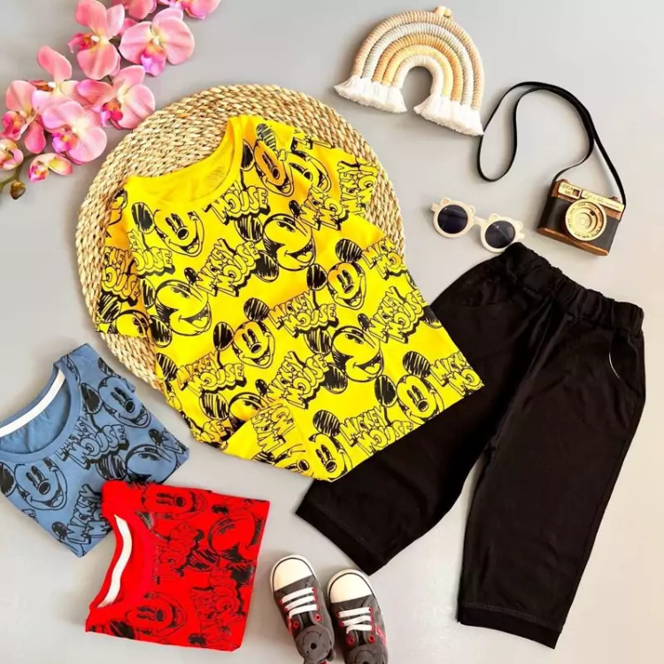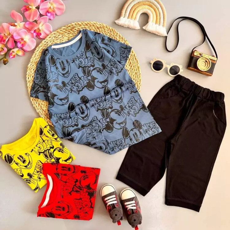 ست تیشرت شلوارک پسرانه نخ پنبه طرح میکی موس