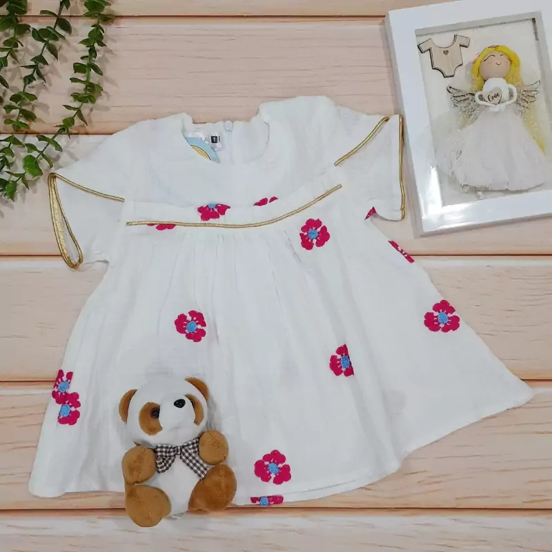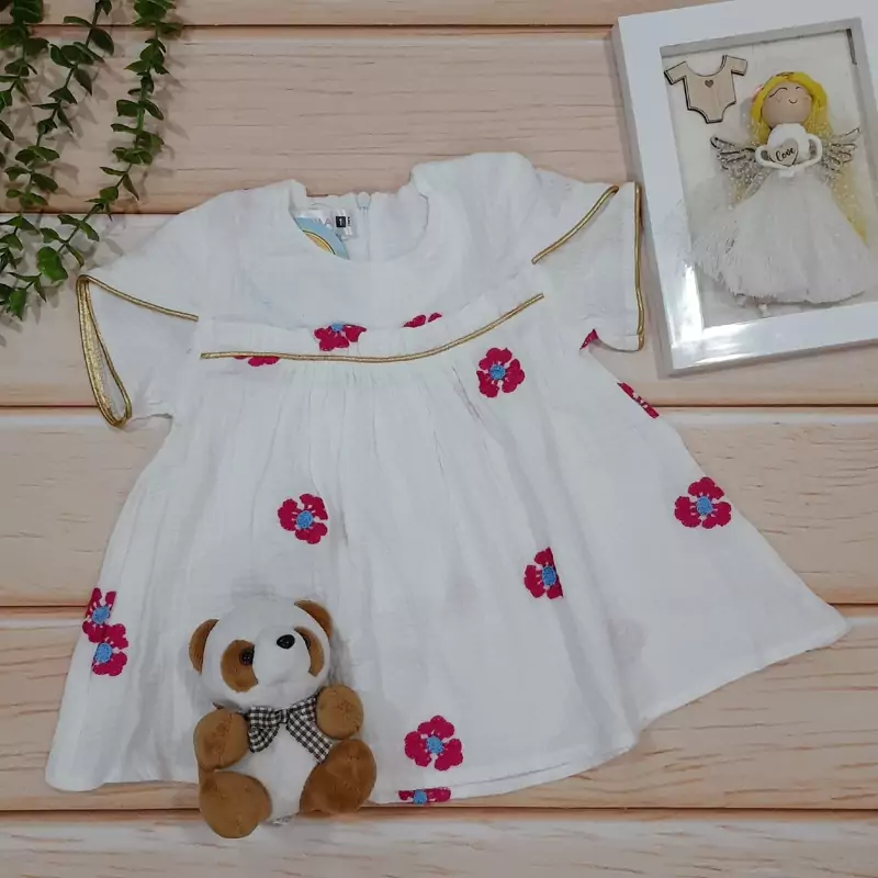 پیراهن دخترانه نخ موسلین طرح گل