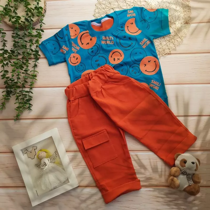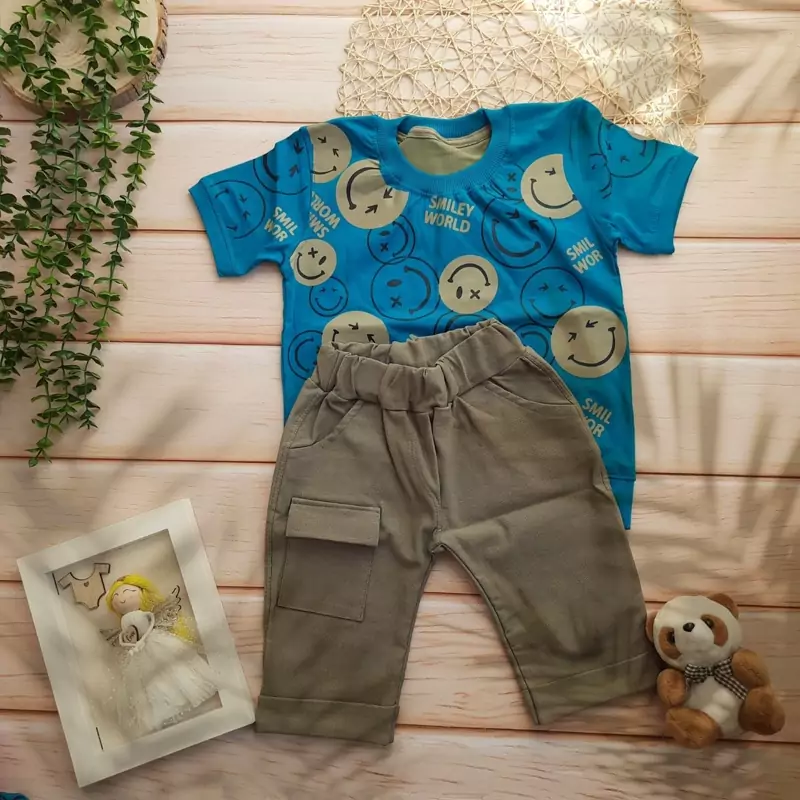 تیشرت شلوارک پسرانه نخ پنبه طرح استیکر