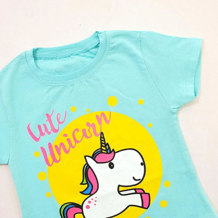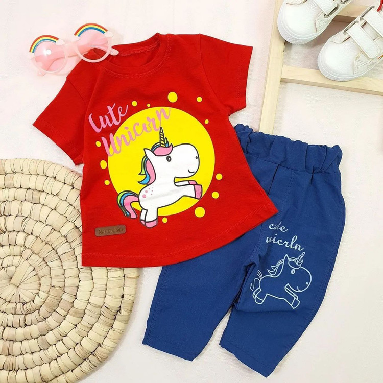 تیشرت شلوارک دخترانه نخ پنبه طرح تکشاخ