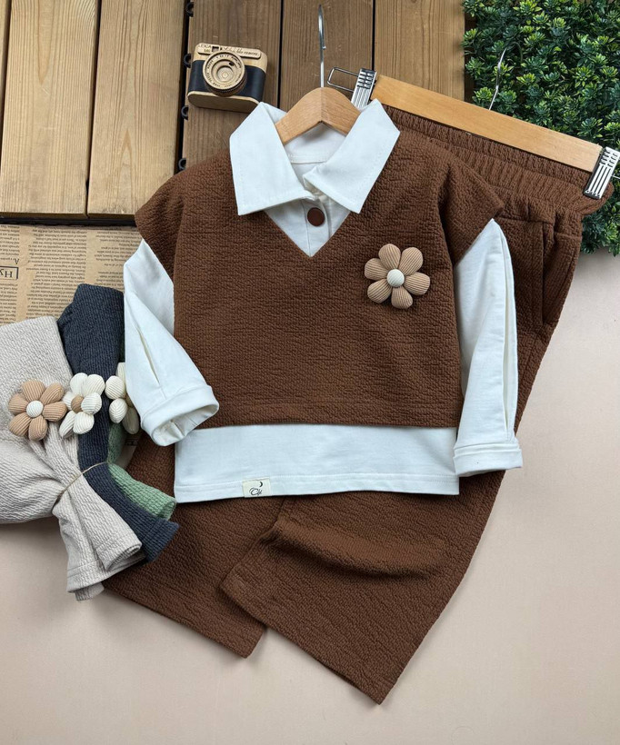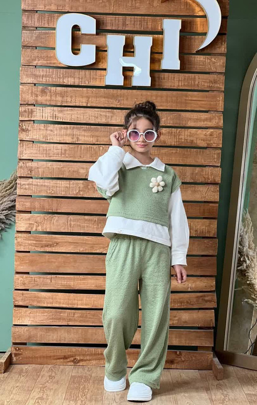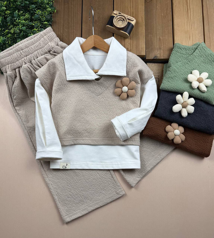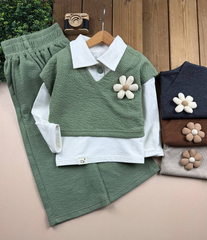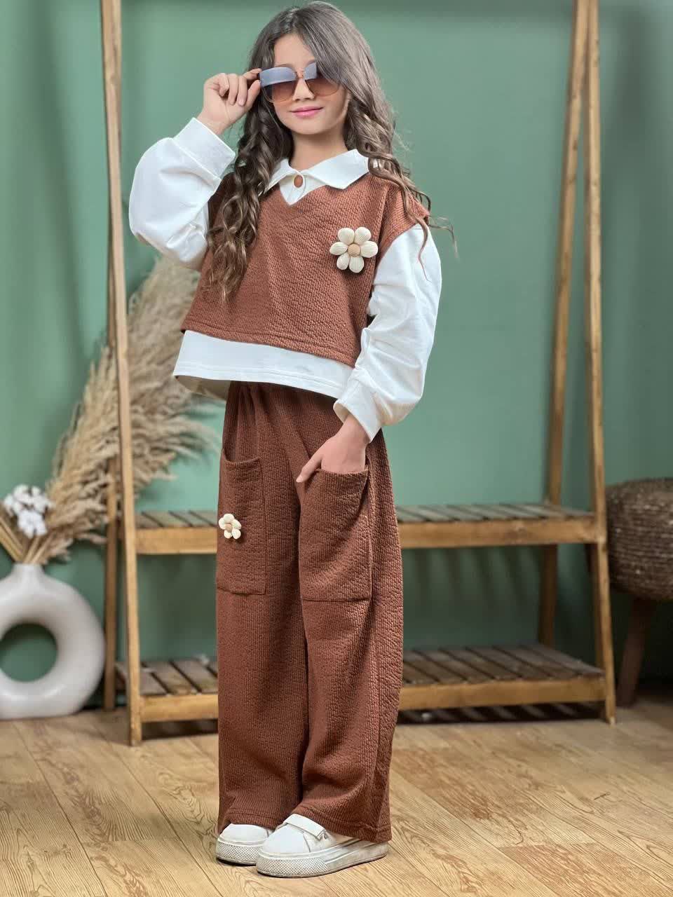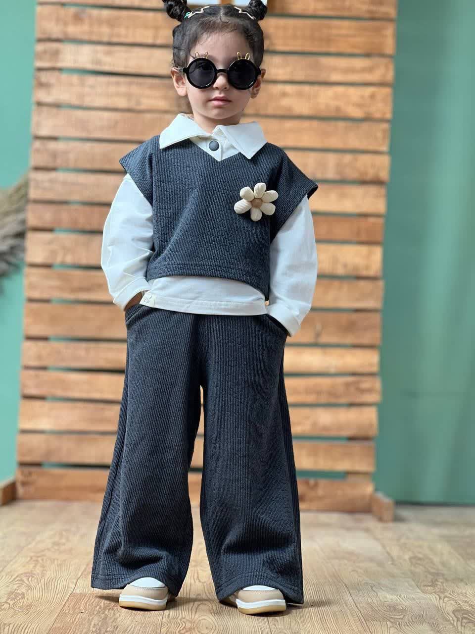 شومیز شلوار و وست سه تیکه دخترانه گل