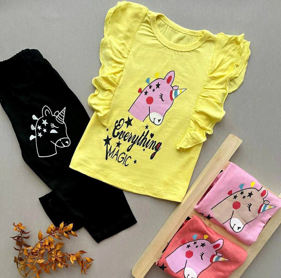 تیشرت شلوارک دخترانه طرح اسب تک شاخ