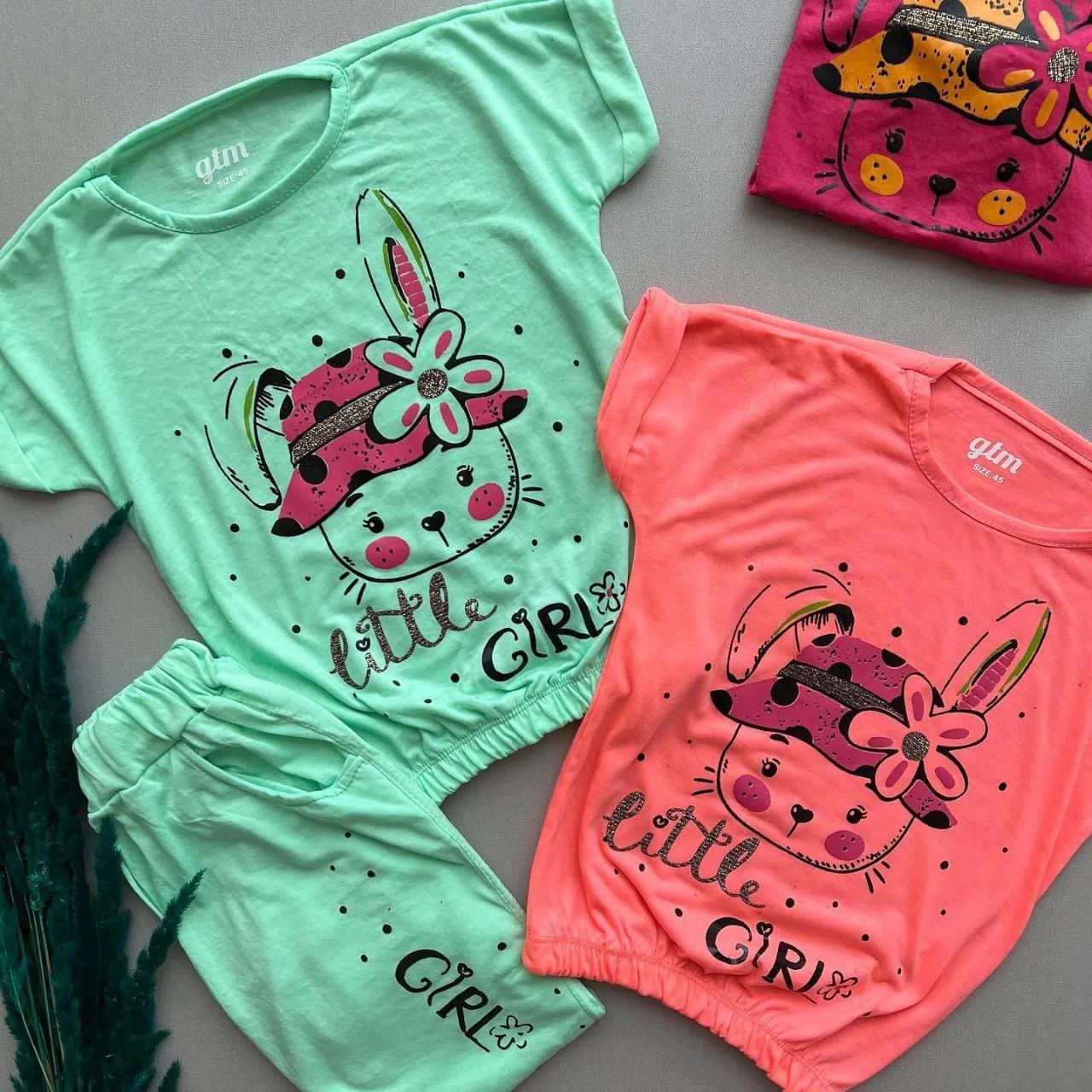 ست تیشرت شلوارک دخترانه نخ پنبه طرح خرگوش