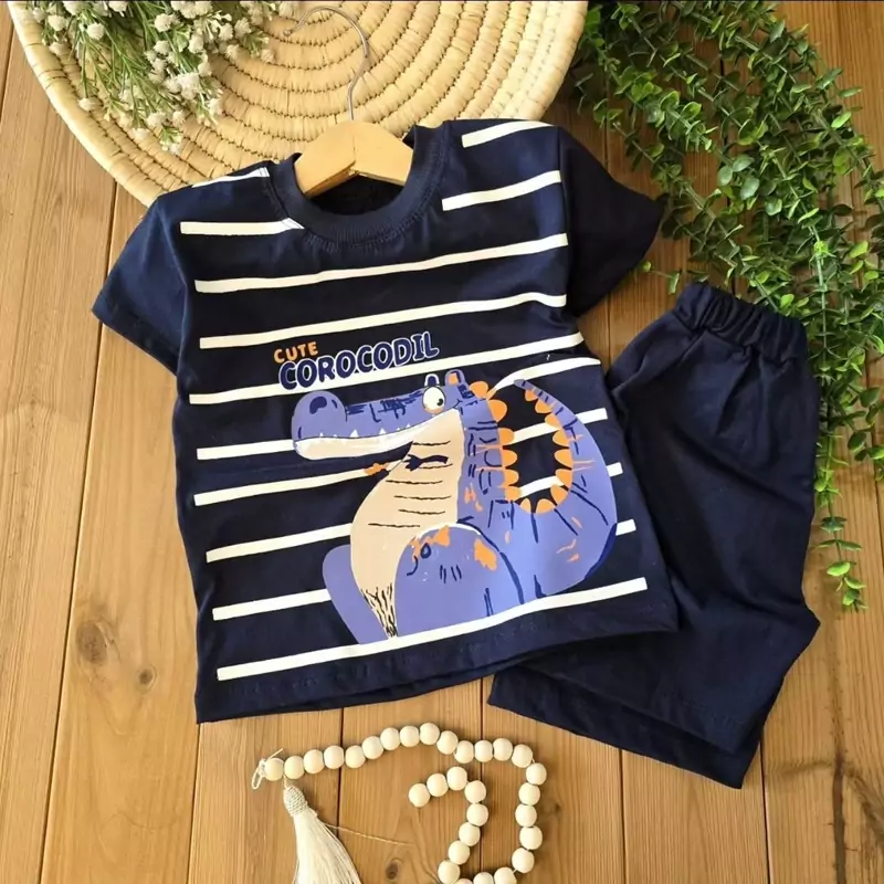 ست دورس پسرانه نخ پنبه طرح دایناسور